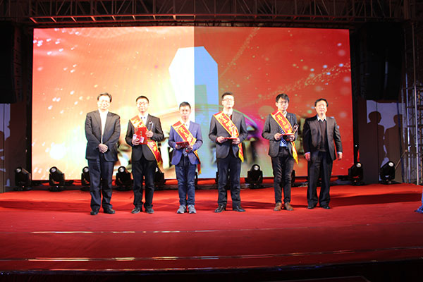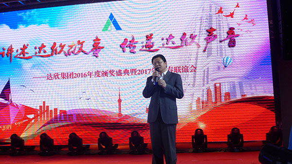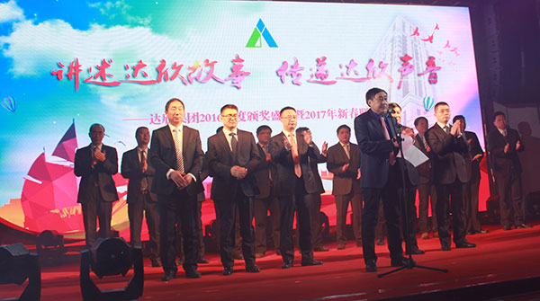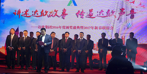 集團黨委書記劉厚純宣讀了表彰決定, 縣領(lǐng)導(dǎo)為獲得集團2016年度的創(chuàng)優(yōu)標桿、實力標桿、項目標桿與管理標桿、達欣新銳等先進個人代表進行了頒獎。