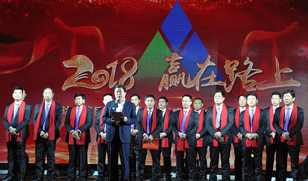 集團(tuán)高管們在澎湃的“我們走在大路上”聲中激情登場,公司董事長馬和軍進(jìn)行了致辭答謝。他回顧了集團(tuán)一年來所取得的輝煌成績,感謝社會各界及全體達(dá)欣人的努力,并對公司的未來之路描繪了新的發(fā)展藍(lán)圖;接著,縣委書記顧國標(biāo)發(fā)表講話, 他指出,作為全縣經(jīng)濟社會發(fā)展的重要板塊,我縣建筑業(yè)總體發(fā)展態(tài)勢良好,總量和質(zhì)量穩(wěn)步提升。作為“海安建筑鐵軍”中的一支老牌“勁旅”,達(dá)欣集團(tuán)的市場競爭力和品牌影響力不斷提升,他對公司2018年工作提出了新的希望,寄語未來集團(tuán)要進(jìn)一步深化企業(yè)體制機制創(chuàng)新,全面加快產(chǎn)業(yè)升級步伐,全面實施“科技強企”戰(zhàn)略,搶抓機遇,精準(zhǔn)定位,打造達(dá)欣更加輝煌的未來!