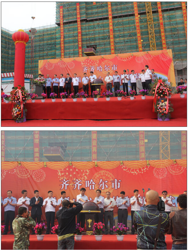7時(shí)58分儀式正式開(kāi)始。首先由第七工程公司經(jīng)理王建國(guó)同志代表公司董事長(zhǎng)馬和軍同志作了熱情洋溢的致辭,齊齊哈爾市副市長(zhǎng)、市公安局長(zhǎng)吳剛宣布封頂儀式正式開(kāi)始,并和王建國(guó)同志共同啟動(dòng)慶典水晶球,項(xiàng)目建設(shè)各方共同慶賀這一激動(dòng)的人心時(shí)刻。