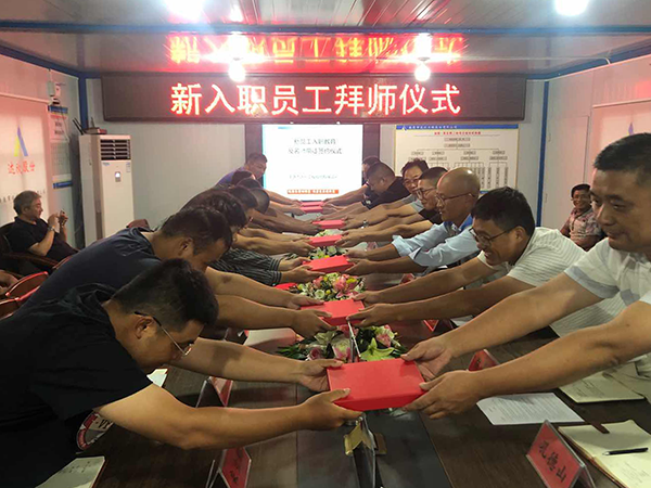 活動開始,大家首先觀看了集團(tuán)企業(yè)宣傳片,新員工對達(dá)欣有了更深刻的認(rèn)識,老員工們重溫企業(yè)的文化、定位以及發(fā)展目標(biāo)。工程公司人事負(fù)責(zé)人倪慶龍宣讀了師徒協(xié)議,師傅和學(xué)徒們了解了本次拜師會的目的和意義,同時也明確了今后在崗位上努力的方向。