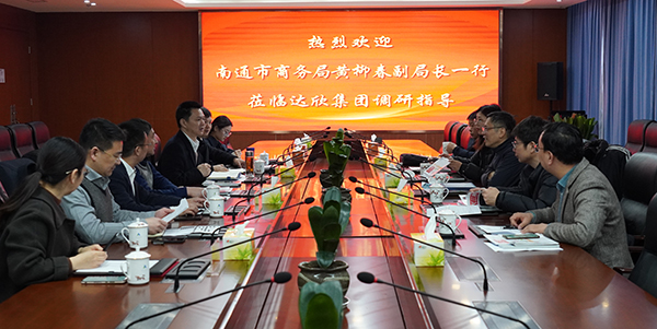 2月24日上午,南通市商務(wù)局黨組成員、副局長黃柳春率隊(duì)蒞臨達(dá)欣集團(tuán)調(diào)研,海安市商務(wù)局副書記、副局長史霞兵,集團(tuán)董事長馬和軍、黨委書記劉厚純、常務(wù)副總經(jīng)理王邦國等陪同。