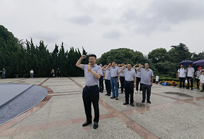 在抗日英雄群雕廣場,全體黨員懷著對(duì)革命烈士崇高的敬意,向革命英雄敬獻(xiàn)花籃,鞠躬悼念中銘記歷史。支部書記倪志榮帶領(lǐng)全體黨員重溫入黨誓詞,面對(duì)鮮紅的黨旗和莊嚴(yán)的誓詞,共同高舉右拳,莊嚴(yán)宣誓。
