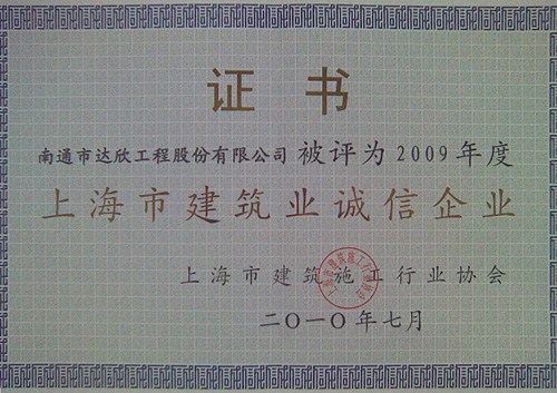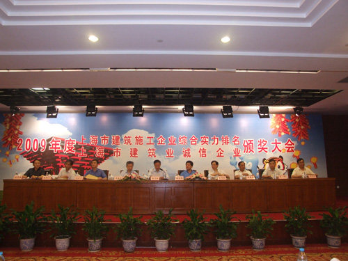 2010年7月30日,2009年度上海市建筑施工企業(yè)綜合實力及上海市建筑業(yè)誠信企業(yè)頒獎大會在青松城會議中心召開。出席會議的有上海市建委、上海市建管辦、市場管理總站、施工行業(yè)協(xié)會、各省滬辦領(lǐng)導(dǎo)以及獲獎企業(yè)共四百多人參加。